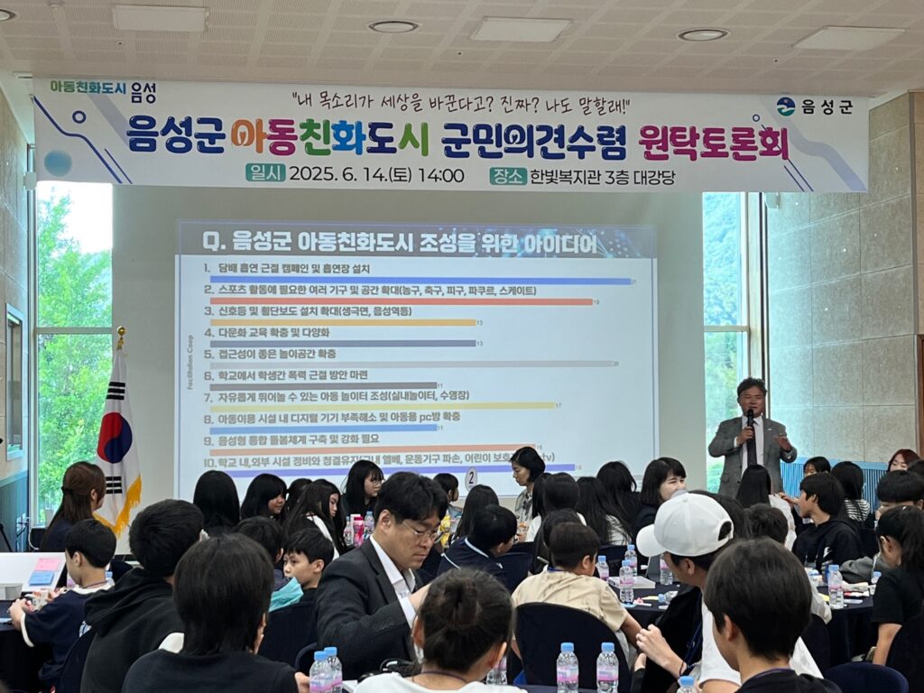 지난 6월 14일, 음성군은 아동이 직접 참여하는 『아동 친화 토론회』를 개최하였습니다. 이번 토론회는 아동의 권리를 보장하고, 지역 사회 속 아동의 의견을 실제 정책에 반영하기 위한 자리로 마련되었습니다.
